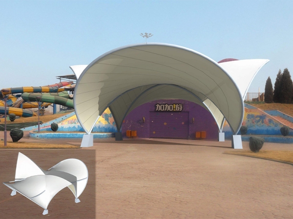 PVDF膜结构材料是由膜结构聚脂纤维加PVDF涂层而成, 更高级的PVDF膜结构材料涂有二氧化钛,材料自洁性极高。 PVDF膜结构材料具有光触媒的有机物分机能(氧化分解),对去除脏污有显著的效果。